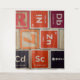 Periodic table of elements building blocks featuring Zinc Zn 30, Dubnium Db 105, Nickel Ni 28, Scandium Sc 21, and/or Cadmium Cd 48 (depending on the size of the design in the product you select). Colours of brown, orange, black, and some maroon and/or yellow. Perfect gift for the science lover in your life if they are a child or an adult.