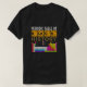 I give wanted to give this a 4 instead of a 5 because these Basic DARK T0shirts run unexpectedly SLIM or Narrow. Which is great if you do not have a potbelly, but I have a paunch. It isn't the shirt's fault that I've got a beer belly. The design and shirt itself is a quality cotton shirt. The color is more of a deep purple, but still a very pretty color. The Basic DARK T-shirts run a bit SLIMMER than the Basic Ts. The neck is a fraction narrower (or seems to be narrower) also. I'm a paunchy middle-aged woman and my neck is 12 inches (31cm) thick and the neckline fell about the same as in the photo of the man, and I had the desire to tug it a bit. So if you're a thick necked man or like loose shirts, be aware these are slimmer shirts. Once I get rid of my lockdown paunch it'll look great. The shirt washed well in cold water with no apparent bleeding. We don't have a dryer, so it hung dry. Did not shrink. Love the colors and the design. The design looks smaller on my shirt than it does on the model on-line. But still, it looks good on the shirt. The printing looks as it does on the model, just the size seems fractionally smaller. Washed garment in cold water, hung dry and design appeared unaffected.