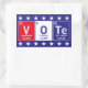 Inspire others to vote with these cool science themed stickers featuring elements from the periodic table spelling out the word "Vote" in the red, white and blue colours of the United States flag bordered by a row of white stars. Elements include element name, weight, and atomic number.