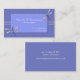 Chic business card, with graphics of a periwinkle blue textured looking background, and two periwinkle blue embroidered looking dragonflies decorating the edge of the text area. Text in white, on the front and back, is ready to personalise for yourself.