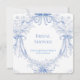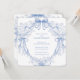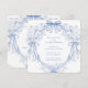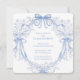 The design features a graceful symmetrical border of soft periwinkle blue florals and flowing bows, creating a refined wreath-style frame around a clean center space perfect for your custom wording. Inspired by traditional letterpress artistry, the illustration has a delicate etched look printed on a warm ivory background, giving it a luxurious heirloom feel.
