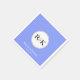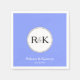 This simple and modern wedding napkin features a white circle with the monogram of the bride and groom on a periwinkle background. Customisable text, near the bottom, features the names of the bride and groom and their wedding date.