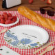 Add a pretty touch to your wedding celebration with personalised paper plates. These party supplies are ready to be personalised with the names of the bride and groom along with their wedding date and feature illustrations of flowers in periwinkle blue with green accents.