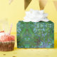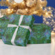 A colourful artistic abstract in periwinkle blue and green with a holographic look like an explosion of paint splats radiating out from the centre. #giftwrap #crafts