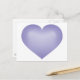This postcard features a shapely periwinkle heart with a white-washed centre. Click "Customise it" to re-size/re-position heart image, change background colour, and/or add text overlay (name, monogram). Choose font style and colour; adjust text size and layout. The reverse side of the card is blank, awaiting your personalised text or handwritten sentiments.