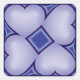 This sticker features four periwinkle hearts with a white-washed centre surrounding a central blue diamond outlined in light blue on a dark blue background.
