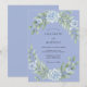 Delicate blossoms in soft periwinkle and verdant foliage create an enchanting botanical archway. This dreamy design evokes a sense of romantic elegance, perfect for a serene celebration. The artistic watercolor style adds a touch of whimsical charm.