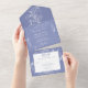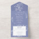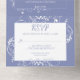 Invite guests to your upcoming wedding with a Periwinkle Flourish All in One Wedding Invite. Invite design features an elegant leafy flourish with matching coloured background with a perforated response card. Personalise with the groom and bride's names along with the wedding date and location. Additional wedding stationery available with this design as well.