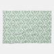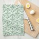 A decorative Kitchen Towel or Tea Towel, with a traditional ogee pattern of Periwinkle flower outlines in Green on a White background. Part of the Posh and Painterly 'Periwinkle Patch' collection.