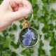 Periwinkle blue Iris close-up floral with white and light yellow centre. Greenery in the background.