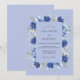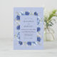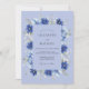 This design features a soft periwinkle background adorned with a border of watercolor florals. Vibrant blue anemones and delicate sky-blue blossoms are paired with muted silver-grey eucalyptus leaves. The aesthetic is ethereal and romantic, creating a serene and sophisticated atmosphere through soft painterly textures.