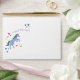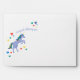 A prancing pale periwinkle blue unicorn with rainbow mane and tail decorates this magically sweet envelope with a custom pre-printed return address and colourful hearts making it the perfect addition to birthday party invitations or to create a custom set of children't personal stationery.