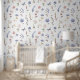 The pastel floral pattern features delicate daisy flowers, watercolor wildflowers, and intricate botanical garden elements. The addition of butterflies fluttering among the branches and foliage brings a whimsical touch to the design. In a soothing palette of periwinkle, grey sage, and cavern pink, this wallpaper creates a tranquil and stylish atmosphere. Perfect for any space seeking a blend of nature and sophistication, it’s an ideal choice for a timeless and chic interior.