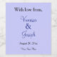 Elegant periwinkle themed wedding favours. Personalise bride and groom's names in centre in dark periwinkle script. With Love From and Wedding Date is written in black text. Type in Wine Name or delete text box field. Wine labels to affix to your favourite wine or sparkling wine bottles for your wedding reception party guest favours or other event. Design by TamiraZDesigns.