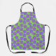 This apron has a spring design of a field of periwinkle flowers on a green background.