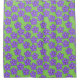 This shower curtain has a spring design of a field of periwinkle flowers on a green background.