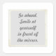 Picture yourself and/or another smiling when you read, Go ahead. Smile at yourself in front of the mirror, printed on a mirror design on affirmation stickers. I made this design to help encourage people to smile at themselves, to help inspire more happiness. Purchase at PositiveAffirmation on Zazzle.