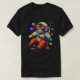 I give wanted to give this a 4 instead of a 5 because these Basic DARK T0shirts run unexpectedly SLIM or Narrow. Which is great if you do not have a potbelly, but I have a paunch. It isn't the shirt's fault that I've got a beer belly. The design and shirt itself is a quality cotton shirt. The color is more of a deep purple, but still a very pretty color. The Basic DARK T-shirts run a bit SLIMMER than the Basic Ts. The neck is a fraction narrower (or seems to be narrower) also. I'm a paunchy middle-aged woman and my neck is 12 inches (31cm) thick and the neckline fell about the same as in the photo of the man, and I had the desire to tug it a bit. So if you're a thick necked man or like loose shirts, be aware these are slimmer shirts. Once I get rid of my lockdown paunch it'll look great. The shirt washed well in cold water with no apparent bleeding. We don't have a dryer, so it hung dry. Did not shrink. Love the colors and the design. The design looks smaller on my shirt than it does on the model on-line. But still, it looks good on the shirt. The printing looks as it does on the model, just the size seems fractionally smaller. Washed garment in cold water, hung dry and design appeared unaffected.