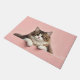 The soft dusty rose pink background adds a warm and elegant touch, perfect for welcoming entryways. Designed with extra space at the top and bottom, it allows easy personalization with names, welcome messages, or custom text—making it ideal for unique cat-themed doormats and thoughtful gifts.