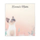 A lovely Persian cat looks upward as it sits against a peach ombre background surrounded by delicate flowers. The text at the top of the notepad can be personalised.