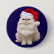 A Christmas button featuring a White Persian cat wearing a Santa hat.