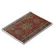 Persian Carpet - Arabic art pattern, Emile Prisses d’Avennes, printed in the book La Decoration Arabe. (1885). This image is a photographic reproduction based on an antique is a richly detailed Persian rug with an intricate design. It features a bold, symmetrical pattern in the centre, utilising geometric and floral motifs. The dominant colours are deep red with accents of gold, blue, and green. The border of the rug contains a repeated floral pattern, adding an additional layer of ornate detail. The craftsmanship is evident in the complex interwoven design elements and vibrant colours.