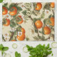 Persimmons illustration. Fruits, flowers and leaves on branches. Seamless pattern. Custom background colour. Custom text.