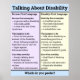 Informational card about person-first vs. identity-first language. These are two different ways to talk about disability: person-first language puts "person" or a similar word first, while identity-first language uses the disability or diagnosis as an adjective to describe the person. Many people have a preference for one or the other. Educate people about both sides!