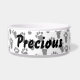 Nice dish to feed your pet. Personalise with your pets name or change it to a favourite word. Has faded type footprints over the whole side of the dish. Customise to make it how you want it. Has the name "Precious" that you can change to any name you wish.