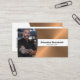 Faux brushed copper sets off the background of this business card design featuring a photo placeholder on the left with template name and title on the right. The back includes a coordinated design and colors with text fields for the business name and details. Replace the placeholder photo with your vertical format photograph and replace the QR code with yours. Fill in the template fields or click customize to select a font style, size, and color you like.