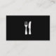 Very simple but modern. A black background and a fork and knife in white in the middle of the card. All information is on the back.