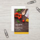 A vertical business card template for personal chefs and catering businesses. The one sided vertical design shows an image of kitchen utensils and ingredients on a wood surface, which is ideal for a business or individual in the food industry. The back is kept intentionally blank, to have the ability to write notes on it.