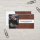 Brown leather sets off the background of this business card design featuring a photo placeholder on the left with template name and title on the right. The back includes a coordinated design and colours with text fields for the business name and details. Keep or replace the placeholder photo with your vertical format photograph and replace the QR code with yours. Fill in the template fields or click customise to select a font style, size, and colour you like.The placeholder photo is courtesy pexels.com.