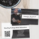 Black leather sets off the background of this business card design featuring a photo placeholder on the left with template name and title on the right. The back includes a coordinated design and colours with text fields for the business name and details. Replace the placeholder photo with your vertical format photograph and replace the QR code with yours. Fill in the template fields or click customise to select a font style, size, and colour you like.The placeholder photo is courtesy pexels.com.