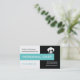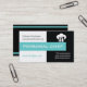 Personal chef minimalist eye-catching black, white, aqua business cards featuring a white chef cap - toque with a fork, spoon and knife on black background and the text “Personal Chef” in an aqua blue band. Perfect professional design for head cooks, personal chefs, culinarians, chef de cuisine, executive chef, chef manager or catering business.