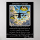 Against a backdrop of a dramatic sky filled with fluffy white clouds, parachutists drift downward from a military aircraft, their vibrant green canopies, each marked with circular designs, catching the sunlight. The blue sky is dotted with soft, scattered clouds, adding depth and texture to the scene. The aeroplane, its silhouette slightly angled, showcases its wings as the parachutists gracefully descend. Above, the words "Personal Courage" are written in an elegant golden font. A thin golden border frames the composition. "The courage of life is often a less dramatic spectacle than the courage of a final moment, but it is no less a magnificent mixture of triumph and tragedy. A man does what he must- in spite of personal consequences, in spite of obstacles and dangers and pressures-and that is the basis of all morality." -John F. Kennedy