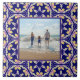 Here's a great personalised decorative addition to your kitchen, bathroom, outside patio, front door area, or anyplace in your home where a Spanish, Mediterranean style look fits right in. The tile pattern in deep indigo blue with repeating floral design makes an eye catching statement on this ceramic tile. Add your favourite personal photo and you have something that's going to bring you joy as long as it's in your home. If you have a design question or would like to see this design on another product, please feel free to contact me at jschmidtdesignworks@gmail.com.