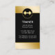 Personal trainer business cards with gold coloured barbell with emblem and gold coloured design elements. Customise the white background colour or personalise the text to make this your own. Designed for personal training service, workout gym, or bodybuilding. The gold coloured accents give your business card template a classy and elegant look for a best first impression.