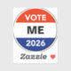 Make your own personalized campaign buttons and other materials for the presidential year primary and general elections of 2026. The default candidate is “ME”, but you can easily change that to any candidate you support or would like to encourage. Or, why not run yourself? You might have a great political future ahead… even as president in a couple of years if you’ll be 35 years old. Otherwise, it’s the Senate, the House of Representatives, or statewide office. Maybe even a local elective office. Get started now. Use the “click to customize further” template link to change font size or color. Even add a small graphic, if you wish.