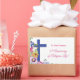 Green leaves, colourful wildflowers, a big blue cross and words in pink. This is the elegant and beautiful Religious gift, souvenir, giveaway or party essential you need for your congratulations on a 55th Anniversary.