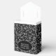 Easily personalise the text on this black and white 60th birthday party theme with the templates supplied.  The design in the background is a black and white abstract of the number sixty (60) repeated in varied sizes and angles in an all-over typography print.  There is a white flap on the top and an oval plaque in the centre front for your text.  Use the easy templates to add your own words, name initial, or monogram.  A great idea for a gift or party favours for your 60th birthday party.