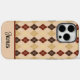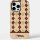 A Beige And Brown Argyle Background iPhone 16 Case You Can Personalise With Name