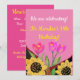 Girls birthday bright pink background sunflower & tulip celebration for girls of all ages. Fun, uplifting and full of joy!
