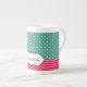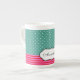 Personalise Classic Polkadots Stripes Teal Pattern Bone China Mug