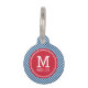 Monogrammed pet tag featuring a stylish blue gingham pattern.