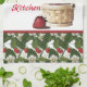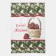 This country farmhouse style kitchen towel features a strawberry plant tiled background with a basket of plump ripe strawberries in the centre. Personalise this kitchen towel with a name or other text. A cute kitchen towel like this one would be a thoughtful housewarming or another occasion gift for her.
