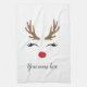 Personalise Cute Christmas Reindeer Face Tea Towel