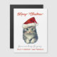 Personalise this cute Santa cat card with your own name. It features a cute cat wearing a Santa hat "Merry Christmas From Our House To Yours". Let your family and friends know that you remember them during the holiday season by giving them this classic card.