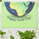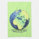 Say goodbye to paper towels and get customisable kitchen towel. ©PLdesign Sparkly Earth Day with beautiful blue sparkles. You can customise text Happy Earth day and light green colour of the tea towel. Please note we use Photo of blue sparkles not actual glitters!