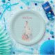 Cute Easter Bunny and Eggs On A Blue Polka Dot ,it is personalise so you can change the name and make it your own.